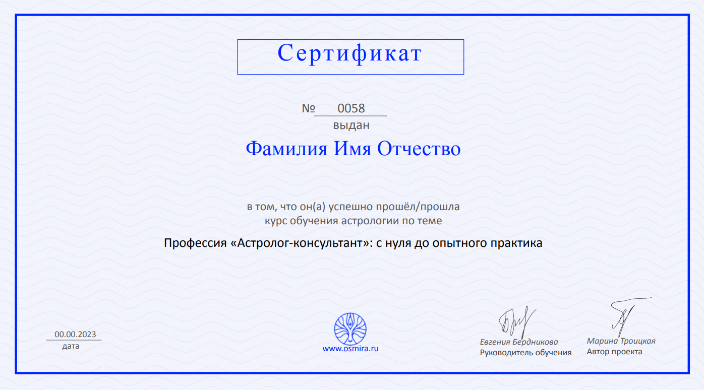 Дополнительные знания помимо астрологии: мы стремимся к тому, чтобы дать разностороннее образование нашим студентам. Поэтому в программе курса изучаются не только астрологические дисциплины, но также основы психологии консультирования, история астрологии и другие полезные сферы знаний.